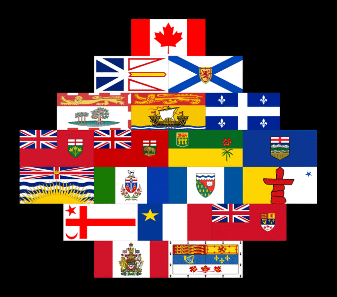 - Canadian Provinces 3: Nunavut, Mi’kmaq Flag, Acadian Flag, Red Ensign, Coat of Arms Flag, Royal Flag of Canada