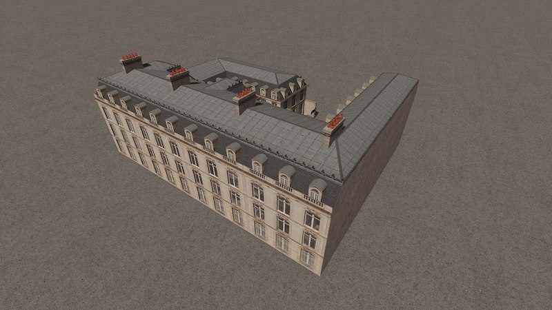 This is a private school based on the building of the Swiss Embassy in Paris. It’s made to fit wall to wall building system, but it also features fully textures back side which can be facing a street, a garden or simply a backside of another blockhouse.
