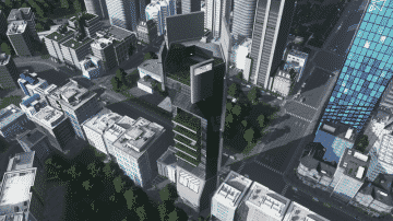 The futuristic commercial node in the network of a city of tomorrow. Don’t forget to rest and relax on numerous decks.