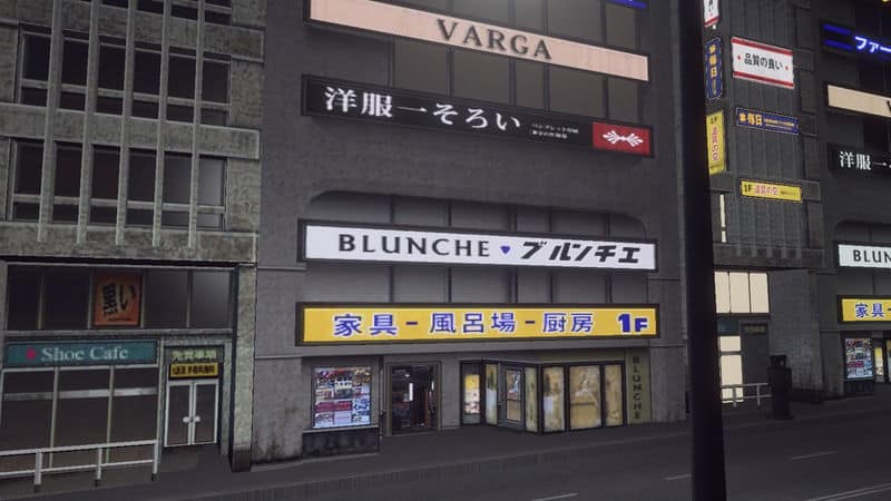 A commercial building model from the Cities in Motion: Tokyo DLC. It features an updated illumination, and specular map and a reworked diffuse map. The model is edited to fit a 2 tile wide lot for a tightly packed, wall-to-wall commercial area.