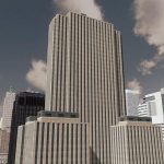 Today it is host to Bank of America, AmTrust, and some other vampiric things. I’ve included at the base some self-illuminating bank logos, as well as a set of Chicago flag emblems in case this venerable old skyscraper gets homesick in whatever new town he ends up in.