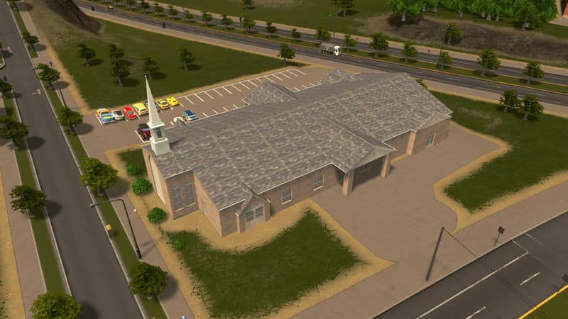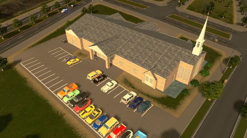 This church building is a common design in the Latter Day Saints Church ( or LDS or Mormon Church). Includes a crematorium sub-building to help out your death care. Crematorium stats same as default.