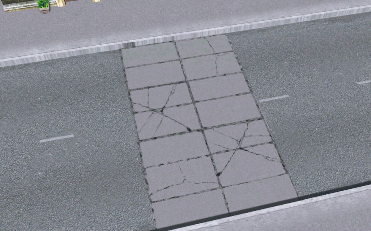 A pack of Pavement Cracks with transparent backgrounds to use around your city. All textures are 512×512 and were created by me. This pack includes 2 cracked decal and 1 undamaged decal.