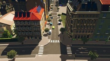 - 16m (2 tiles) wide right-of-way – two 3m one-way vehicle lanes, with 2m parking lanes and 3m pavement (5m at bus stops) on both sides
