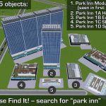 Five objects are included in this asset, to give you as much creative freedom as possible! Each sub-building has 4 complete sides for welding fun. Use the Find It! mod and search for “park inn” (remember the space) to find all buildings and custom props. Use the Loading Screen Mod to massively reduce the memory used by this asset, as it will detect the ~10 sets of duplicate textures and only load them once. You will download ~132MB from the workshop (this and prop pack), but only ~13MB will go into your RAM.