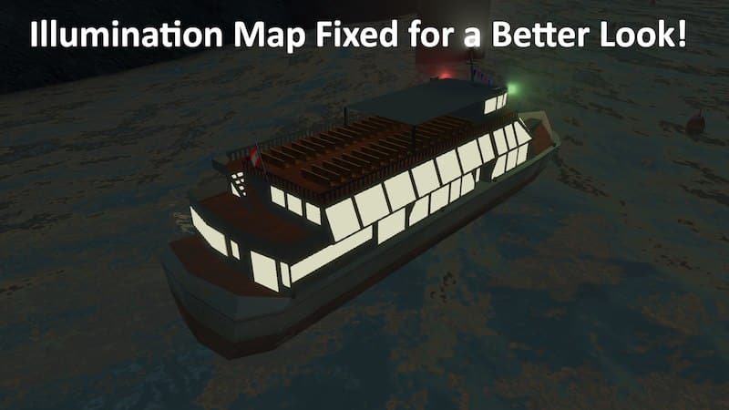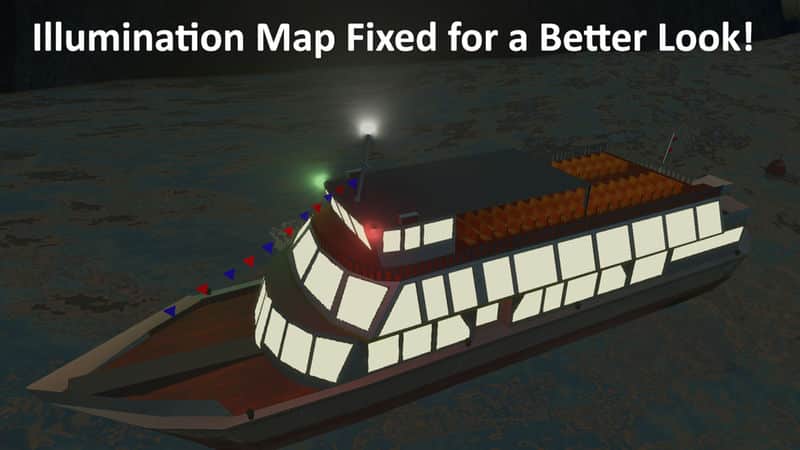 Original model by Swiss[CH] Illumination map changed by me to feature nighttime illumination. Reoriented Ferry Lights to place them on top of masts or the roof. Replaced the default red with a line colorable stripe to indicate line.