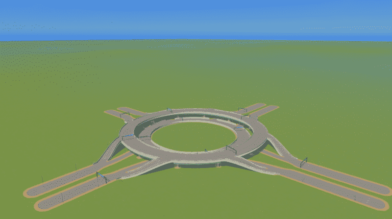 A Roundabout Traffic for 2 crossing Highways. Two roundabouts connect the highways in opposit direction to provide an easy and fast changing.