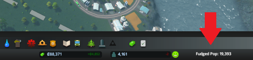 Maxis in SimCity 2013 fudged the displayed population in the UI so it felt like you had a lot of Sims, although the number of Sims simulated was actually quite lower. This mod re-uses that formula taking the population you see in the Cities Skylines UI and adds another Fudged Pop # to the UI so you see both real and fudged populations.