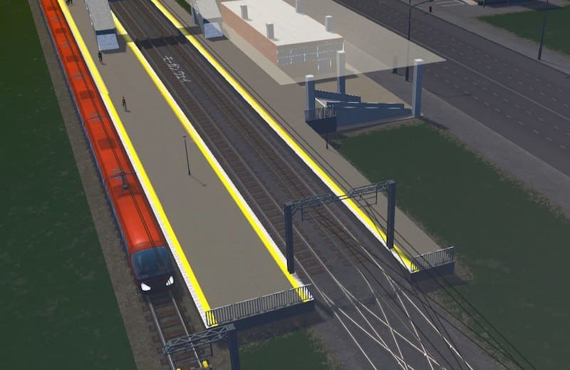 鉄道駅の単式ホームモジュールになります。One-Way Train Tracks MODが必要です。なるべく平らな場所に設置してください。エンドモジュールとしても使うことができます。