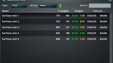 For detailed stats see the last picture. They are 725-898 tris with 512×512 textures, and the LODs are 100-121 tris with 64×64 textures.