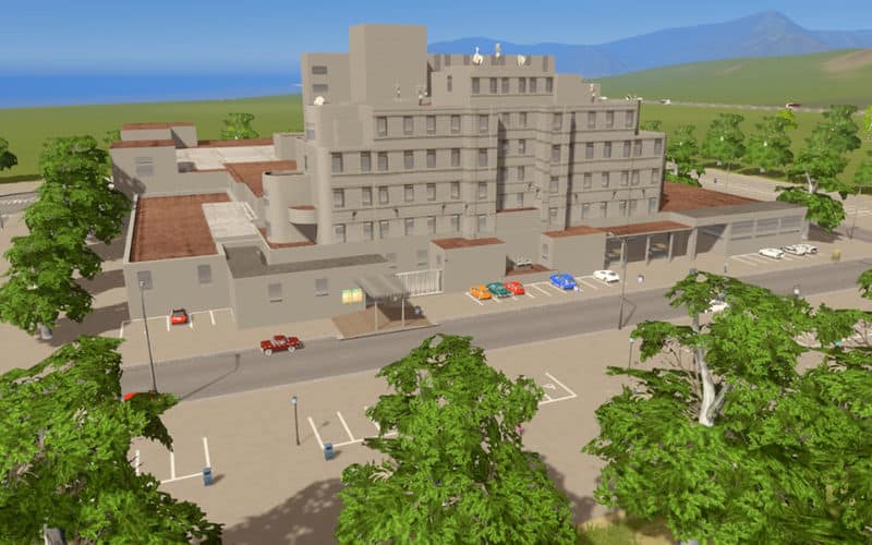 – Gli screenshot pubblicati sono un esempio di come inserire il modello all’interno di una città esistente. Il modello scaricato comprende solamente l’edificio principale e gli oggetti di scena ad esso legati. Parcheggi, edifici laterali e strade sono create con i normali comandi di gioco