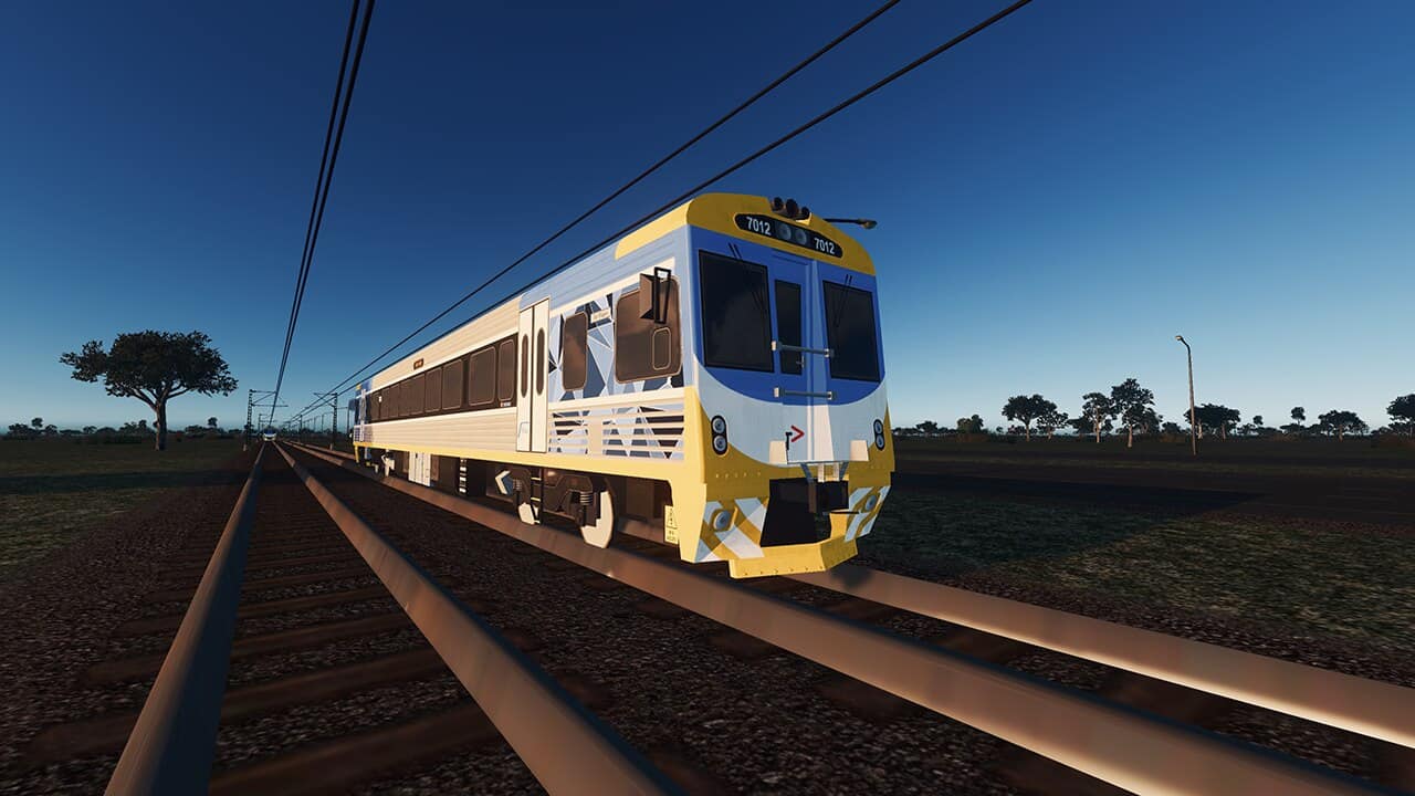 The V/Line Sprinter is a diesel railcar built in the early 1990s. This version has the Keylines Public Transport Victoria (PTV) livery, currently used on the “Roy Higgins”.