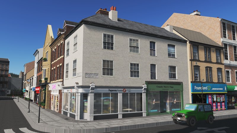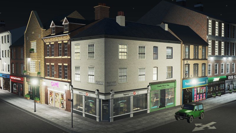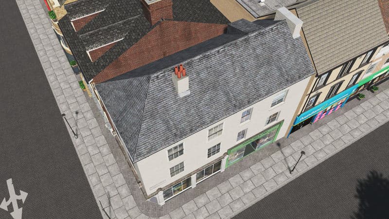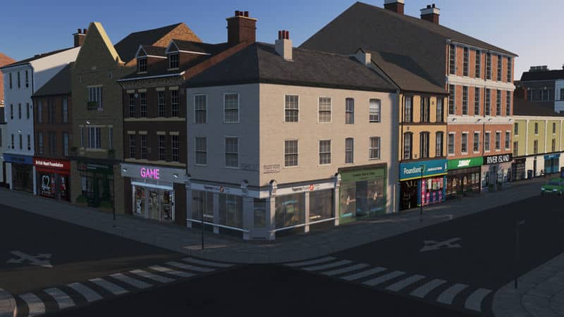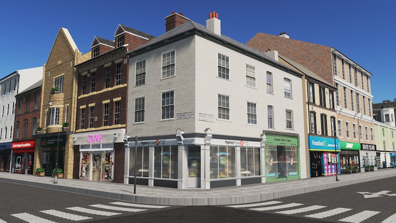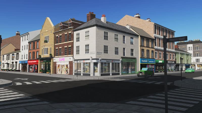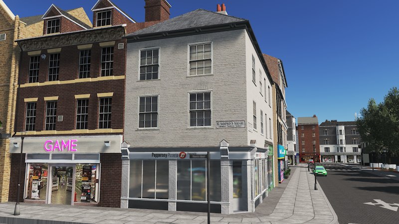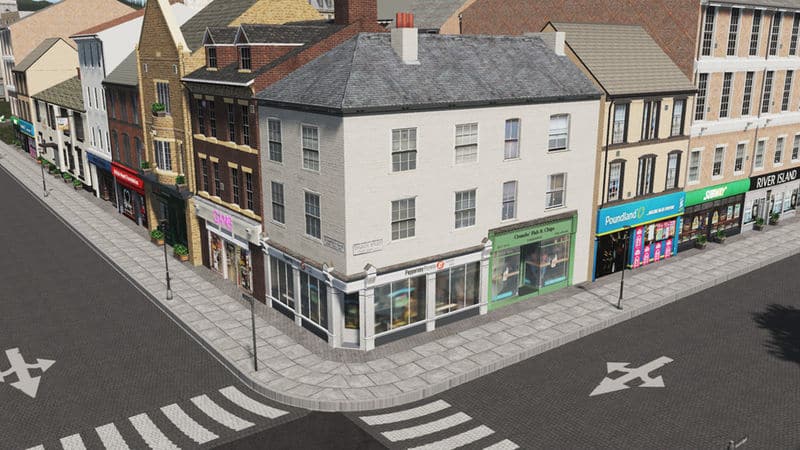 Traditional brick wall-to-wall city corner shops from York, United Kingdom ( UK ).