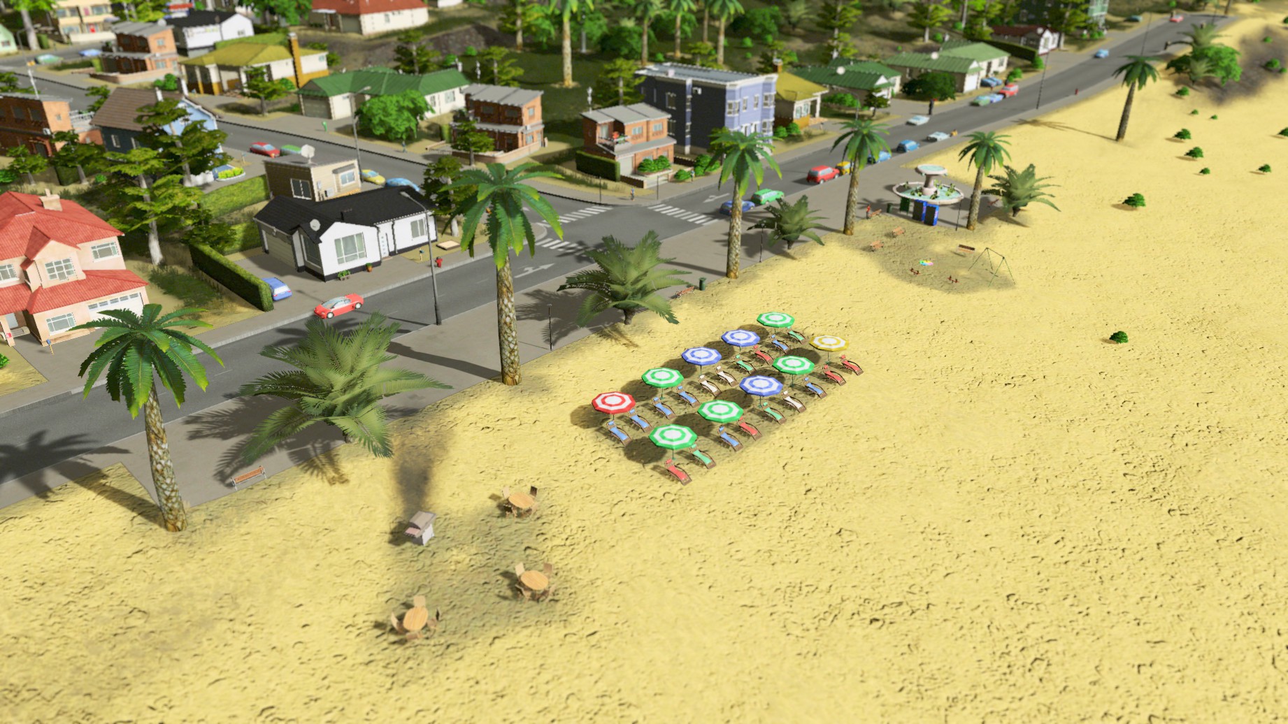 A 12×4 beach to be placed on sand with a playground and a grill.