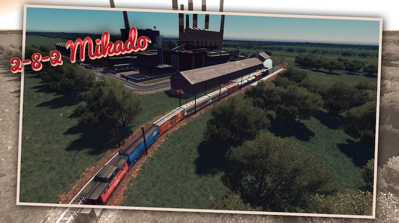 Its the 2-8-2 Mikado steam train, one of the most renown american steam trains, this train performed well in all fields of transport. Cargo ? no problem. passengers ? no problem either. This Mikado is used for specific transport from farms and rural stations. comes with a few boxcars, as well as grain hoppers and milk tanker wagons.