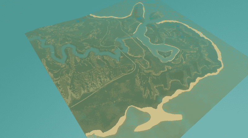 Back in the golden age of piracy, this tropical island served as an impregnable pirate fortress, with plenty of fresh water and a well protected port. The island’s unique karst topography provides many natural terraces and plateaus for building (feel free to use this line for your own terraced maps ? A huge waterfall makes a scenic backdrop to it all. Good farmlands, forests, ore deposits and even oil abound.