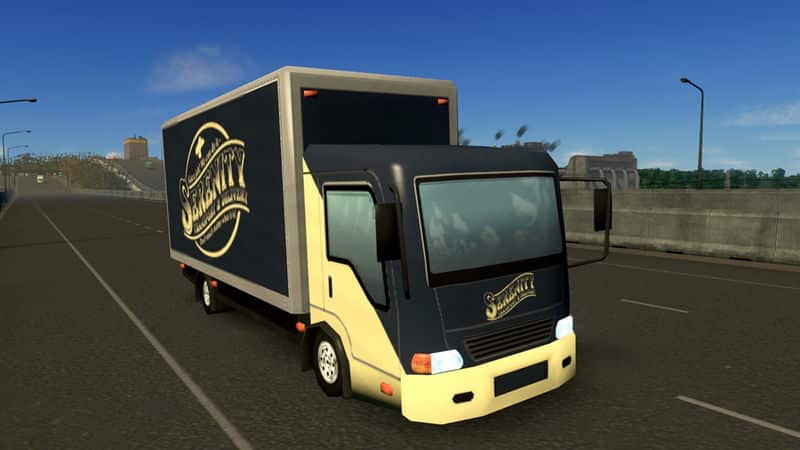 To fellow Firefly fans we introduce the Box Van version of the Verse’s premium transport company. Like a leaf on the wind, Wash is your co-pilot. Just imagine some toy dinosaurs glued to a dilapidating dashboard as this truck delivers precious and likely stolen goods of the Alliance to your commercial and industrial sites.