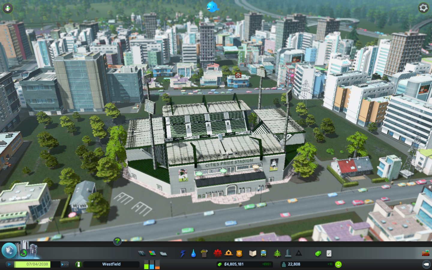 As you can see it is a small fictional stadium that should house your citys home football team. Now here is the gag: Its customizable (regarding color). You can submit, enter the game and change the color the way you want it. Only downside, you can only change one color a time…. Cities doesn’t allow more than one color variation. so by now its white/your color. I’ll put another version online with dark seats anytime soon.