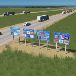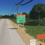 – A collection of construction signs; A “road work ahead 100ft” sign, A “let em’ work le em’ live” sign and a “work zone
