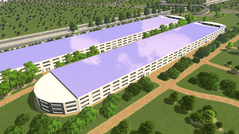 In fact, the real building is a gigantic parking lot.
