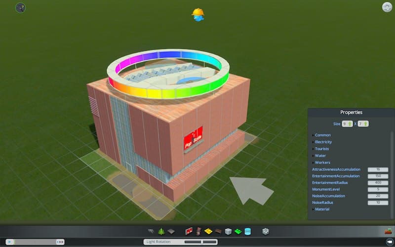 This is a unique building that does not replace another building. Asset is 9×7 squares- the model itself is the real size of 52×52 meters.