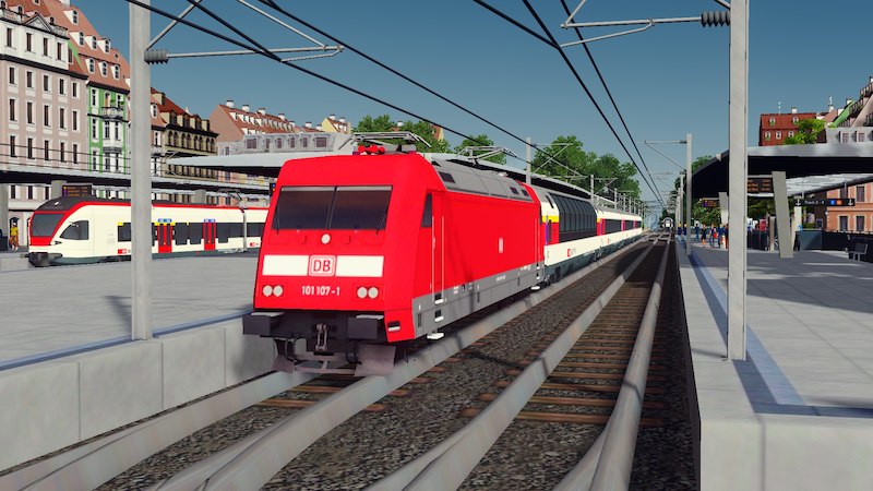 DB BR101 Electric Locomotive and SBB EuroCity panorama passenger coach.
