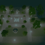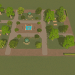 Family Park Is a 14 x 10 park with picnic tables, gazebos and a central fountain.