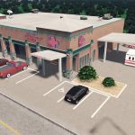 The asset is found in the Health tab and is a corner piece for the Riverpark Shopping Center pack.
