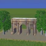 Marble Arch is a 19th-century white marble faced triumphal arch and London landmark. The structure was designed by John Nash in 1827 to be the state entrance to the cour d’honneur of Buckingham Palace; it stood near the site of what is today the three bayed, central projection of the palace containing the well known balcony.[1] In 1851 it was relocated and following the widening of Park Lane in the early 1960s is now sited, isolated and incongruously, on a large traffic island at the junction of Oxford Street, Park Lane, and Edgware Road.