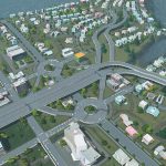 Er hat 2 Kreisverkehre für einen freien Verkehrsfluss und Fußwege.