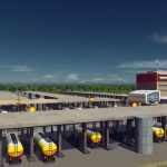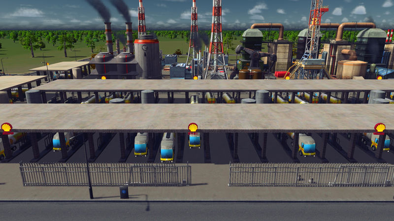 A Shell version of my oil loading terminal! This is 4×4 but when it spawns next to itself they join up perfectly and look like one big building. Note though that the truck prop has a bit high tris count for a prop. The building works fine without it but I think it adds just a little more detail.
