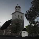 The cross at the top of the tower is a separate (but not required) prop, available at Rauma Church cross.