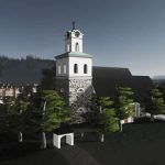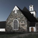 A building modeled after the Church of the Holy Cross located in Rauma, Finland. The grey granite church was completed around year 1520 and it served as a Franciscan monastery until the Swedish Reformation. Church was re-established as a Lutheran church in 1640. The bell tower was built in 1816 and the white steeple served as a landmark for seafarers. The church is a part of the Unesco World Heritage site of Old Rauma.
