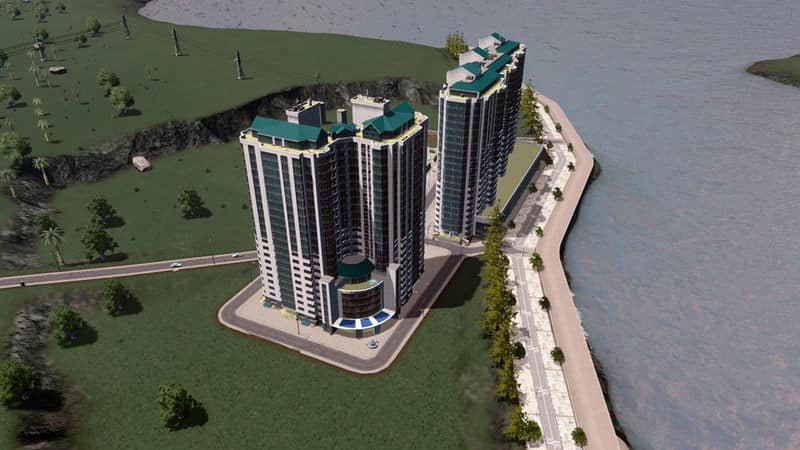 But now I finished 3 buildings of residential complex “Admiral”. Original complex located in central part of Krasnodar near the river Kuban. These buildings oriented for rich citizens, there are many 2-floor flats and penthouses. Complex contain 5 buildings, 3 of them you can find in my workshop. Another buildings (the first; and two towers, built in 2017) are being created.