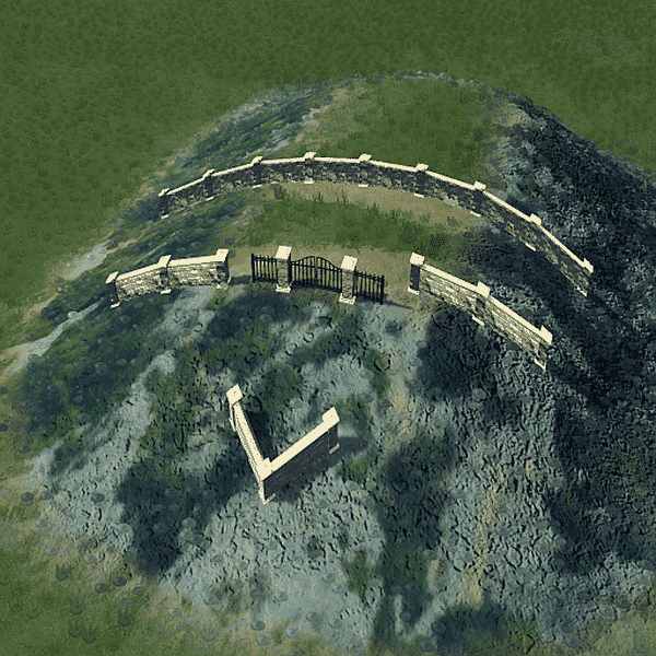 This is a ploppable version of my stone wall set which conforms to the terrain. There is a 1×1, 4×1, corner and iron gate piece.