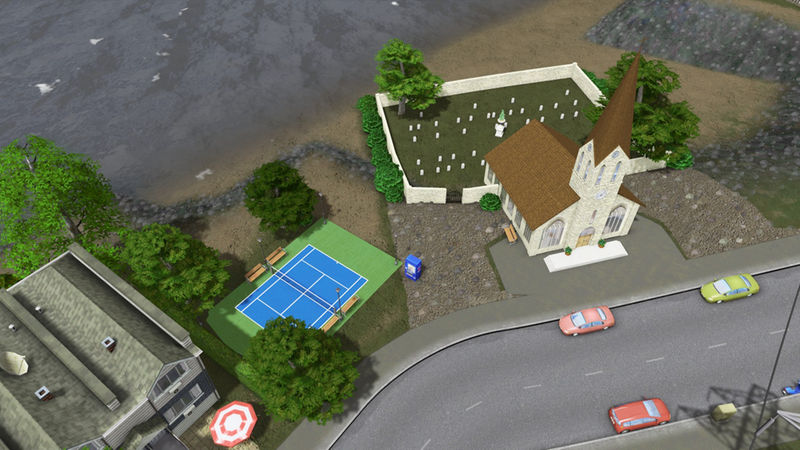 This is a small park consisting of a tennis court, some benches for the players to sit on and a vending machine for them to juice up. If only it was possible to animate the citizens to play. For now its a pretty placeholder ?