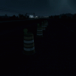 – 5x barrels/drums, mit Blinklichtern (Höhe: 39 inches, Breite: 18 bis 21 inches, Abstände: je 11,5 ft)