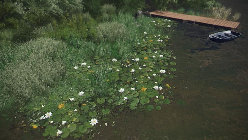 The asset can be found in the Water Structures Tab (the one with the canals). Use MovIt and Prop & Tree anarchy to place them densely at your shore vegetation.