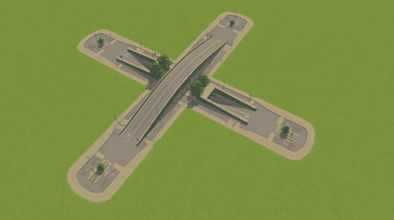 三层立交 ,非常省地,显示中很常见于城区之中。 这个立交 需要配合tm这个插件。更改红绿灯及车道, 造景玩家,也需要自己准备沥青覆盖 画线