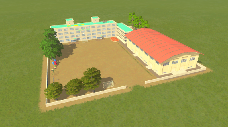 ゲームでは9年制みたいですが、建物および人数は6年制で設計されています。