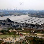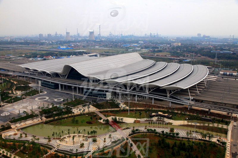 This is a one of the high speed railway stations in wuhan, china. the station provides 10 elevated platforms and it