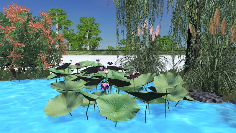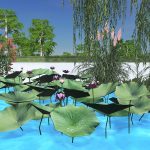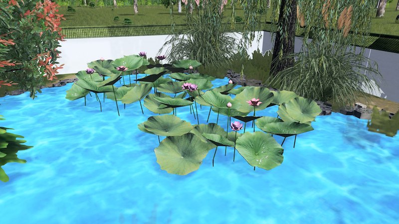 一小丛荷花和荷叶,此版本不含水下部分,如此可放置于任何水decal、湖物件等等的上面。