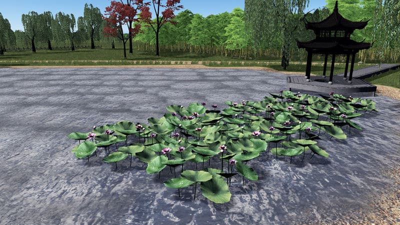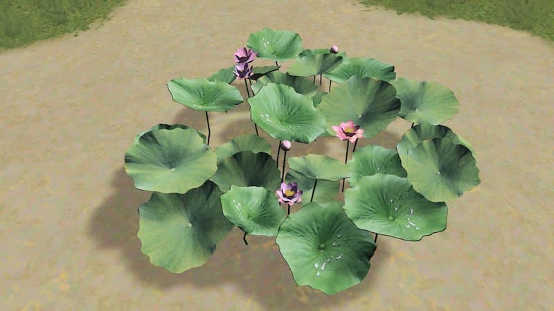 a cluster of lotus consist of leaves and flowers.This version is without any underwater part so it can be placed on any water decals, pond props etc.