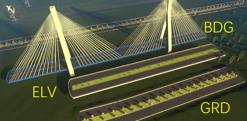 配合无碰撞等mod以及特殊的桥墩可以做出来国内大城市的那种高架路嗷,妈妈再也不用担心高架路下修一条路两边不同时有格子了!