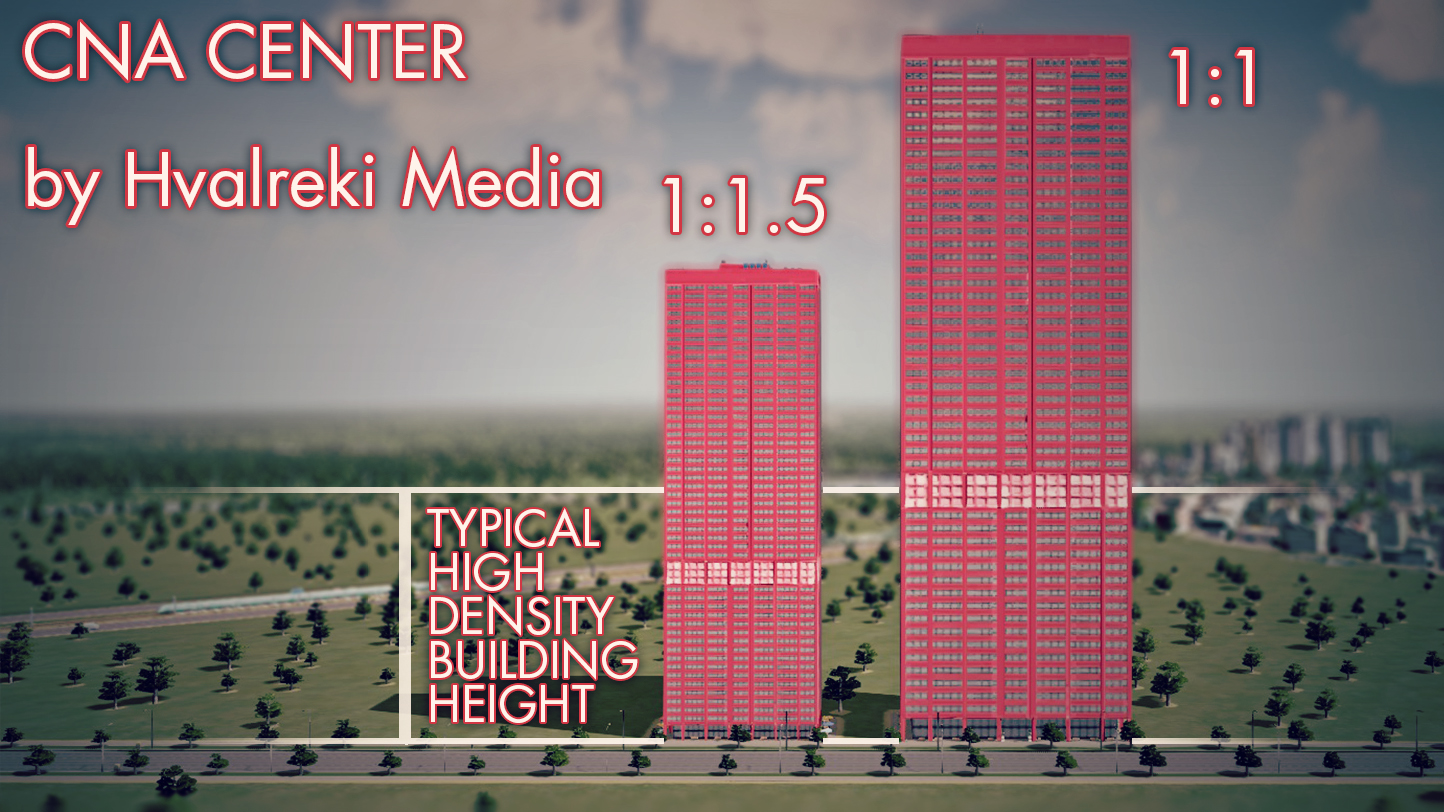 This is the 1:1 Scale version of this building, so it towers over the base game high density buildings. If this scale is too tall for your needs, check out my 1:1.5 Scale version!