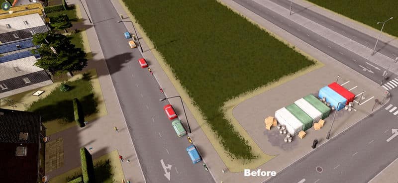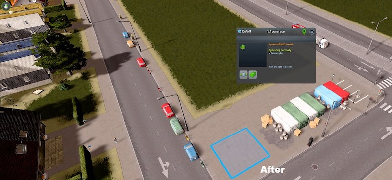 This simple 1×1 gravel piece is meant to fill gaps between streets, parks or whatever you need, if you do not want to have a small patch of grass popping up. Counts as a park, but does not actually increase happiness.