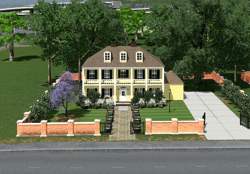 Props included in the screenshot are wallrok, Soldyne’s Iron Fence/Brick Wall, Manicured grass, garden grass, fallen leaves, etc. They are not included in the assets, only props listed as required are included.