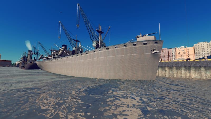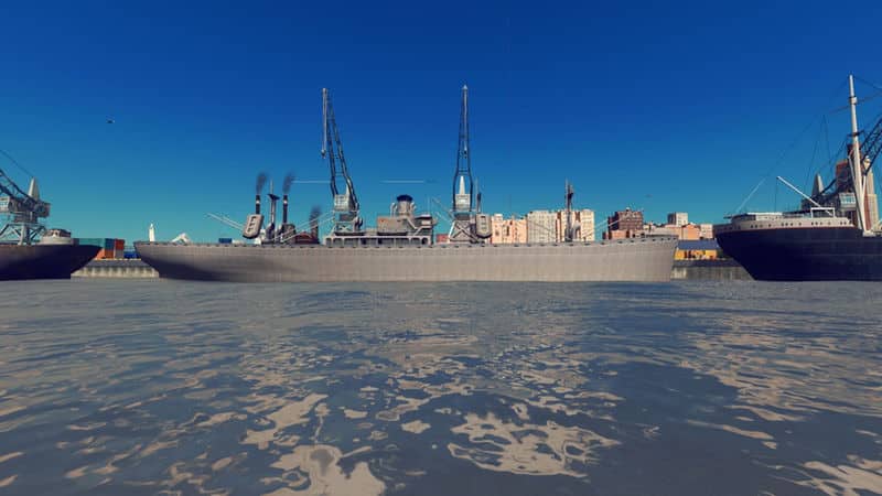 Its large, and on top of that it is armed. this navy surplus vessel has been converted to a regular freightliner for your shipping companies convenience, however, the guns are still installed, if they are functional ? noone knows……..