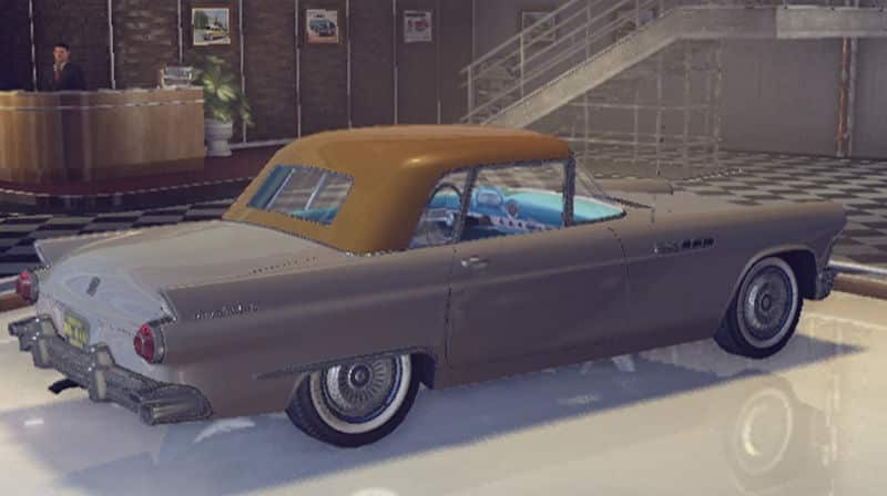 This car was a crossover classic for the Mafia franchise. The car appeared as the Bolt Thrower in Mafia 1 in the final cutscene but based on the 1957 Ford Thunderbird model, while the similar cutscene in Mafia 2 was replaced with the 1955 model as the getaway car for Vito and Joe. This asset is a revamped release of an earlier crp. The 1955 Ford Thunderbird on which the Smith Thunderbolt is based on is a sleek two seater which ranges in price on auction, but can easily be yours for the price of your first degree. The 1955 Ford Thunderbird was released to compete with Chevrolet’s Corvette and provided more luxury than autosport – not that you could tell in the Mafia games. She is another beauty you could look forward to prowling your city streets.