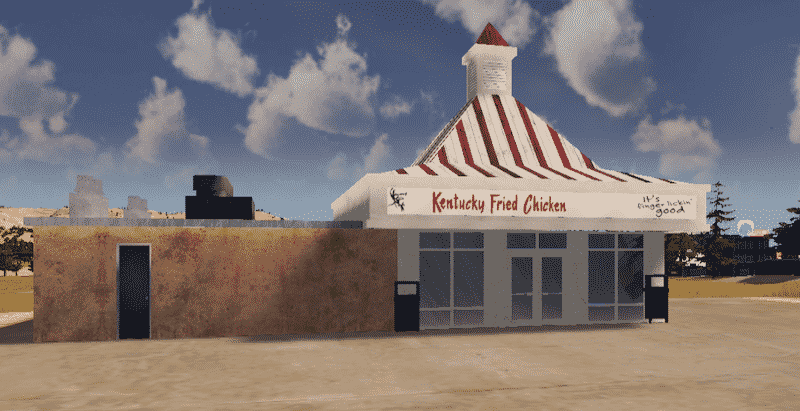 By 1963 KFC was the largest fast food operation in the United States. As such, it is his 1960s style fast food joint that was chosen to pay homage to KFC within this workshop.